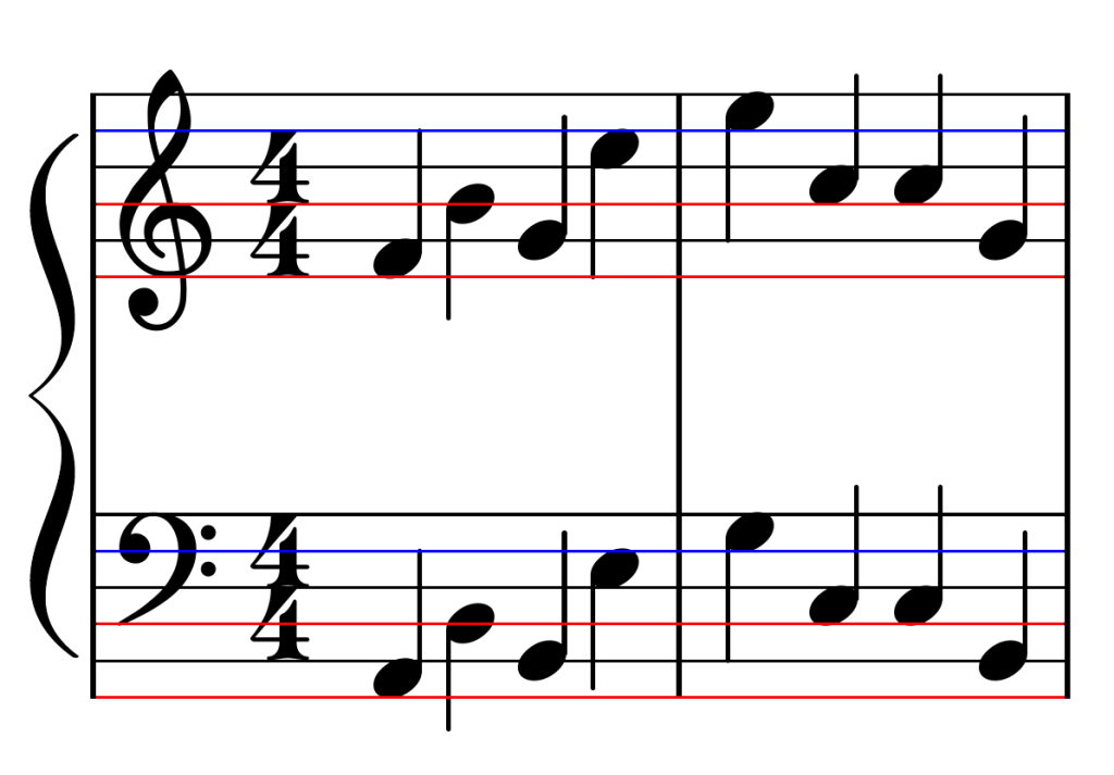 La notación habitual presenta una asimetría entre pentagramas que confunde visualmente.